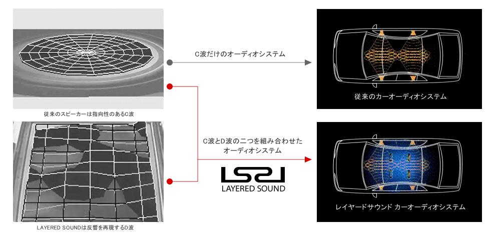 LAYERED SOUNDは、従来のC波に、適切にD波を加えることによって、①干渉によって失われていた音を復元し、②自然で理想的な音場感と臨場感を実現しているのです。