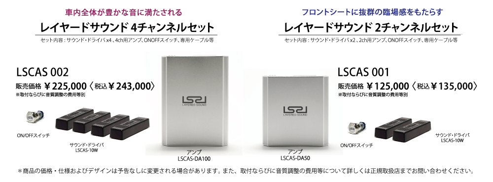 LAYERED SOUNDは車の広さやリスニングスタイルに対応したラインナップがございます。